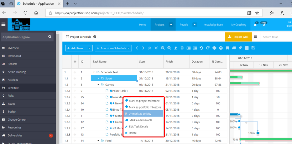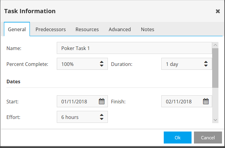 - Context Information Box - Right click on existing task and a pop-up will display then choose the ‘Edit Task Details’. User to update details via the Resource and General Tabs.