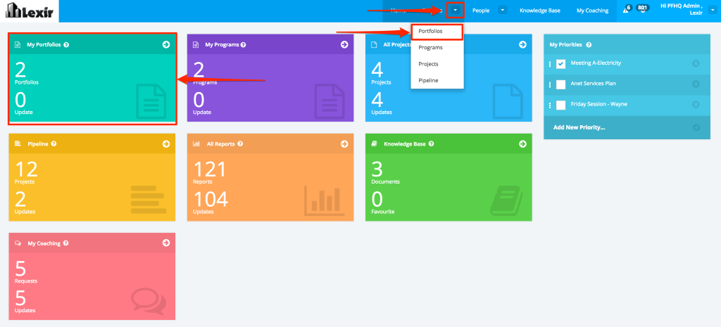 - Once logged in you will reach your Company’s Homepage, within the ‘Tiles’, navigate to the ‘Portfolio Dashboard’ by clicking the ‘My Portfolios’ tile or ‘Portfolios’ from the Main Navigation.