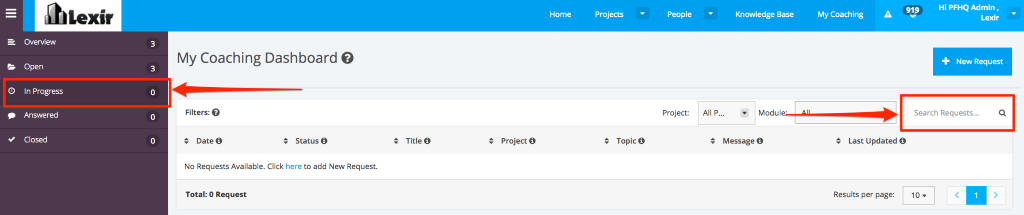 1. Navigate My Coaching In-Progress Requests