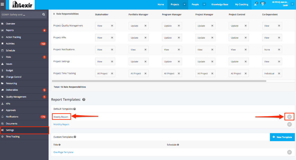 1. Go to the Report Templates section. Choose a default template or custom template you want to edit by clicking on the Default Template/ Custom Template link or the Edit icon.