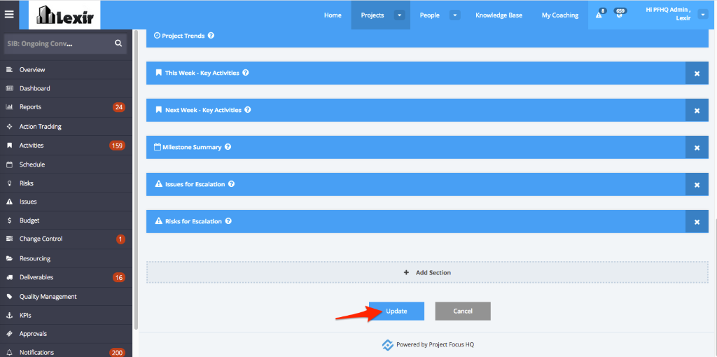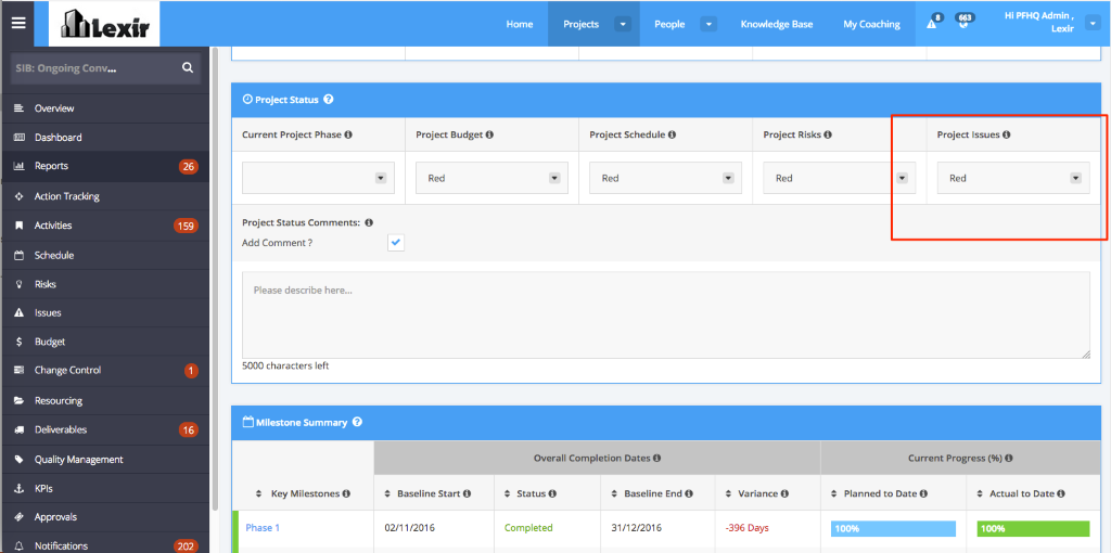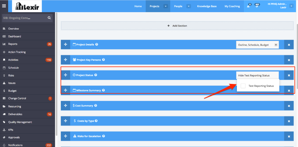 5. Go to the Project Status section, and you will see the 5th Reporting Status being shown.