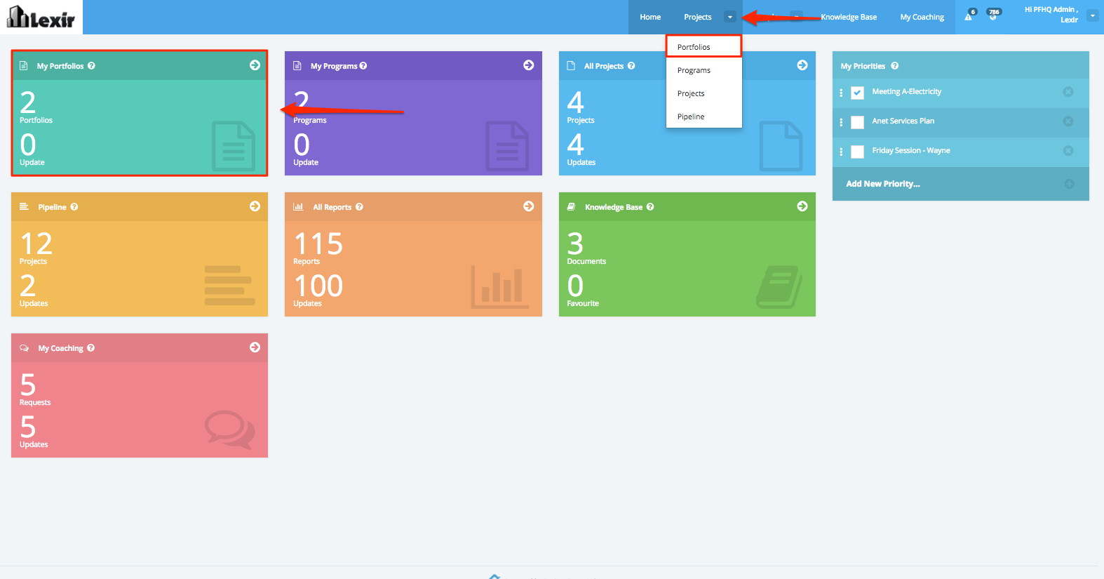 2. In your Company’s Homepage, within the ‘Tiles’, navigate to the ‘Portfolio Dashboard’ by clicking the ‘My Portfolios’ tile or ‘Portfolios’ from the Main Navigation panel on the top most part.