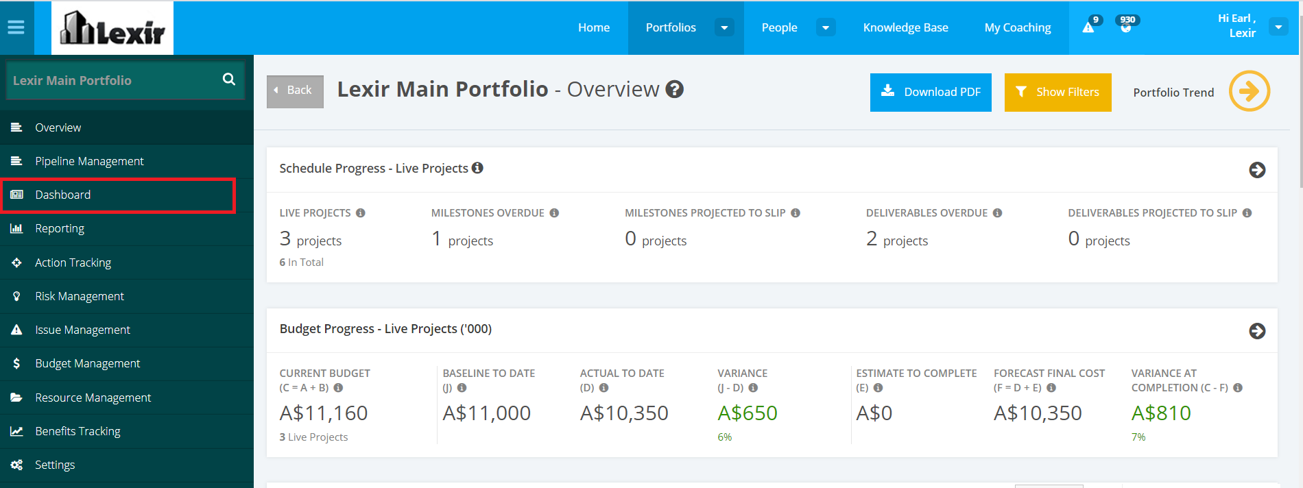 4. Once done, you will be redirected to the Portfolio Overview module. In the Portfolio sidebar menu, select the Dashboard module.
