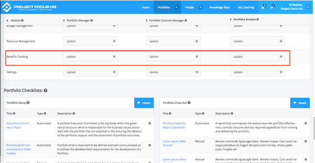 - This will add Access Levels for Benefit Tracking Users in the Company Page applicable for Portfolio and also within the Portfolio Settings page.