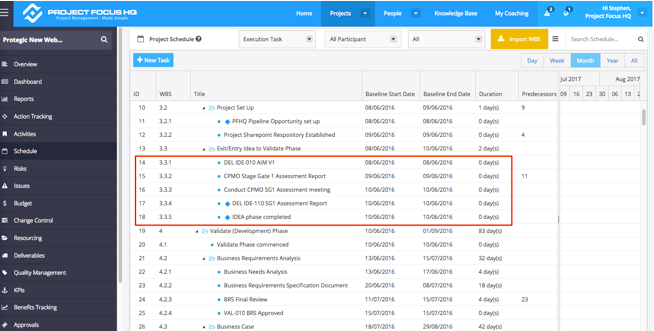 - Project > Schedule and Milestone > Baseline Start Date and Baseline End Date - 0 duration