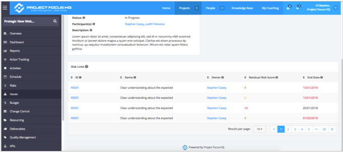 - The selection is based on dropdown menu containing all risks or all issues within the project regardless of status (including ‘pending new’)