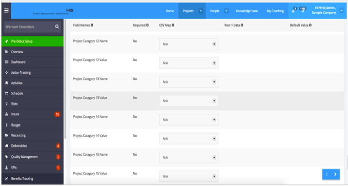 - Project > Benefits Tracking > Import CSV: Addition of 15 Project Category Weighting fields