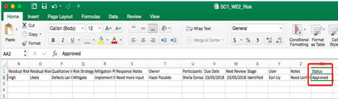 - Note, the following fields cannot be updated via a CSV Risk Import: Status, Risk ID, Raised By, Raised Date, User.
