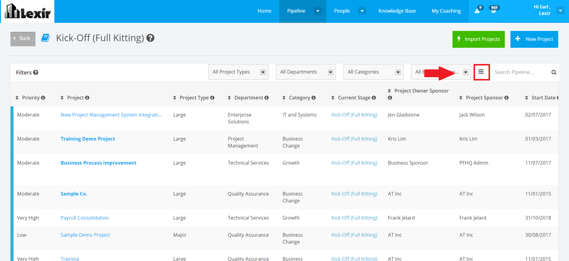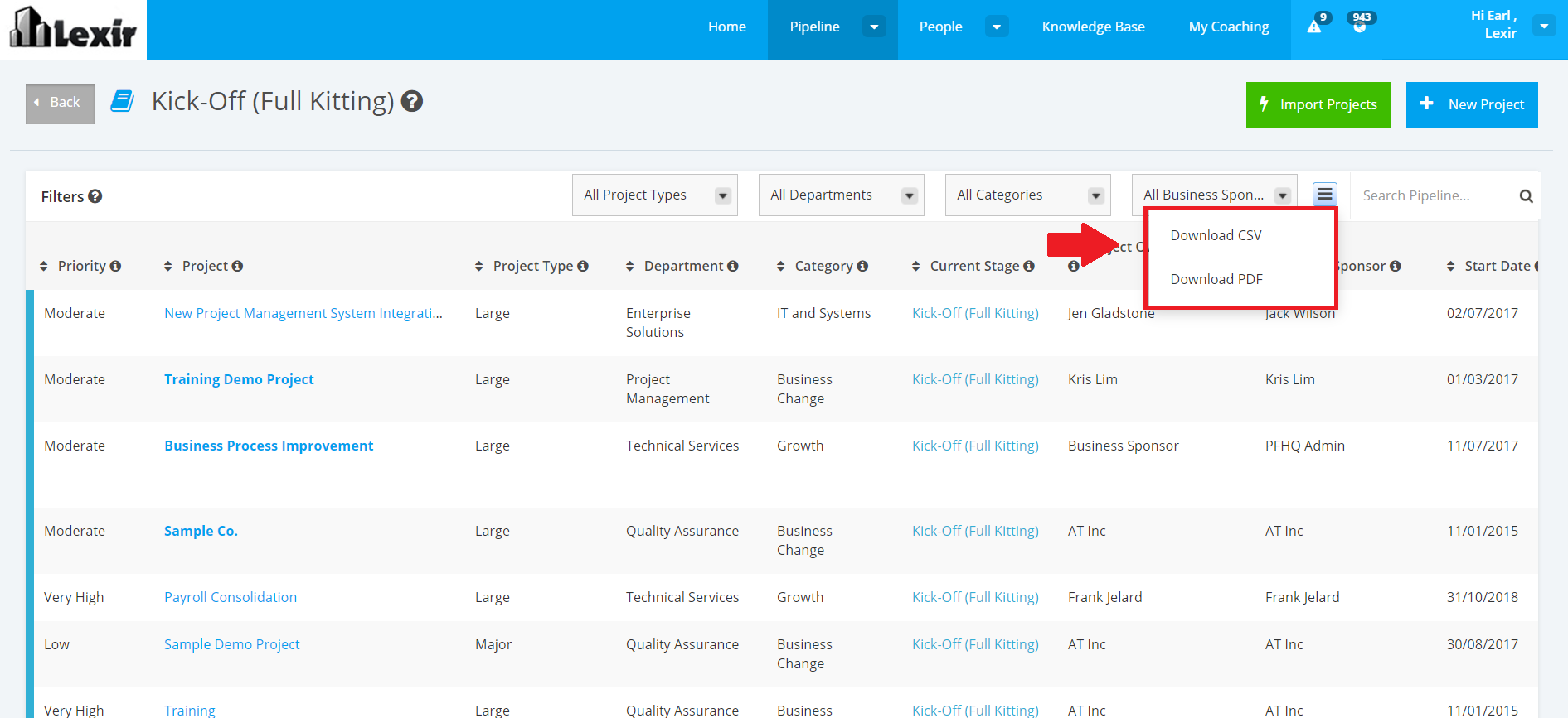 1. Within the ‘Kick-Off (Full Kitting)’ page, navigate to ‘Filters’ section and click the ‘Download’ icon.