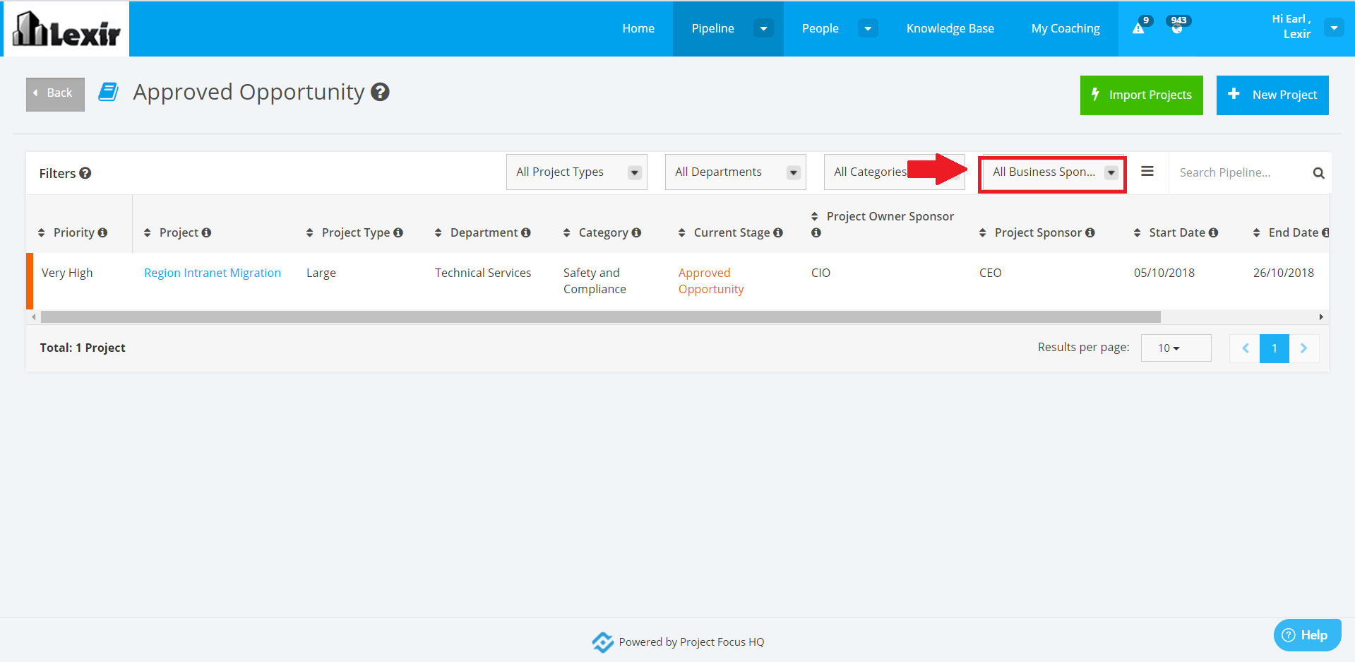 2. Once done, choose any ‘Project Sponsor’. If you want to display all ‘Approved Opportunity’ projects, click ‘All’.