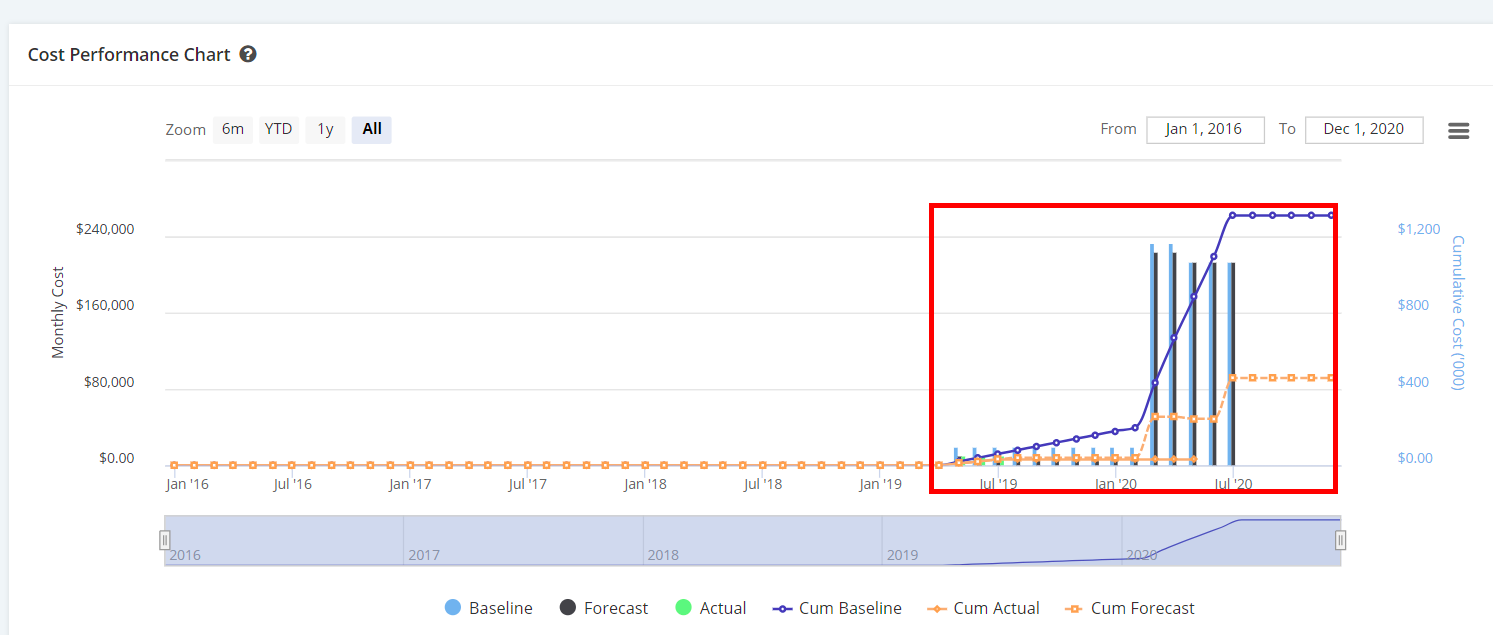 The Portfolio Cost Performance Chart will now display the budget items of the current portfolio as well as all associated sub-portfolios. This is in addition to the already existing data which includes all of the portfolio and project budget items.
