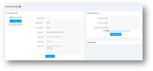 2. Go to User Profile, then click on “Multi-factor authentication settings (MFA)” link.