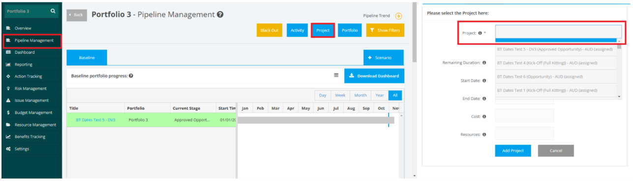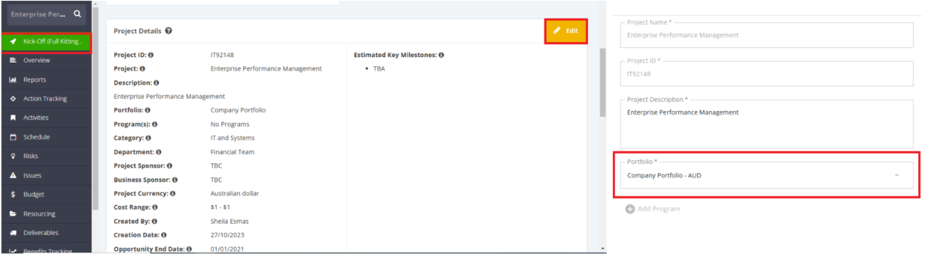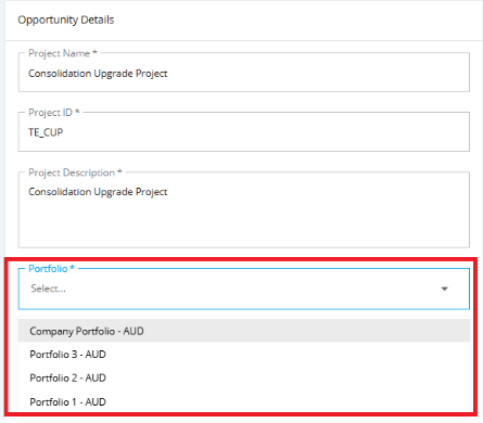 - Phase 3 Planning set-up page > Project Details > Portfolio