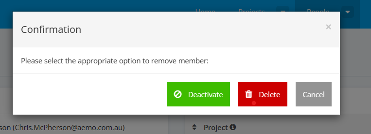 Go to People Module. Select the user you wish to Deactivate. Click on the Link ( It will open the User Page). Click the Remove Member.