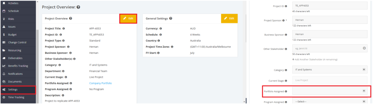 - Phase 3 & 4 Project Settings page > Project Overview > Portfolio